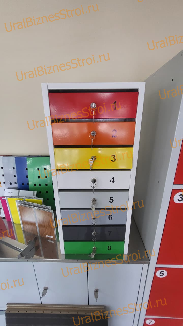 • Детали шкафа окрашены порошковой краской и ПО УМОЛЧАНИЮ имеют защитно-декоративное покрытие светло-серого цвета (RAL 7035) • Каждая секция закрываеться индивидуальным замком иимеет 2 ключа в комплекте.