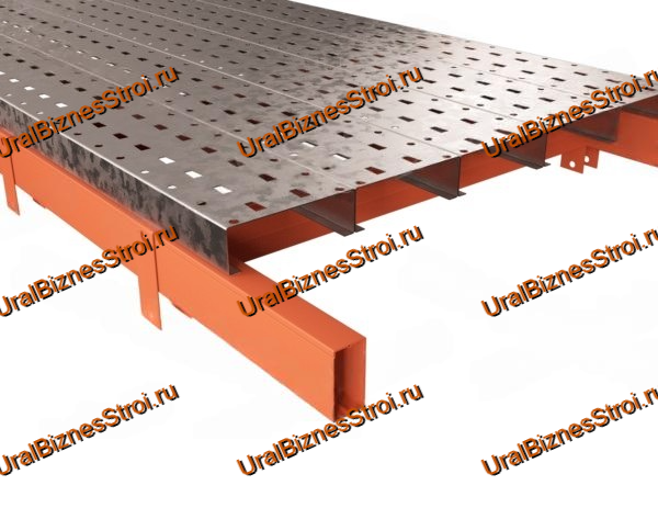 Устанавливается на рамах стеллажа, служащих базой полочных или паллетных стеллажей. При отдельной установке платформы она выполнена в формате полноценного уровня, а на него помещаются стеллажи для расстановки определенных грузов. Пол этажа застилается металлической решеткой, П-образный профиль или профилированными листами, фанерой.