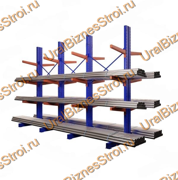 Стеллаж консольный двусторонний 3500x1400x2420 мм тяжелый 4 яруса