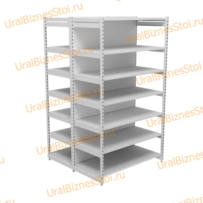 Торговый островной стеллаж (Усиленный с передней стойкой) 2350*300*1200 7 полок