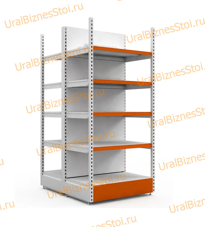 Торговый островной стеллаж (Усиленный с передней стойкой) 2350*400*1200 5 полок