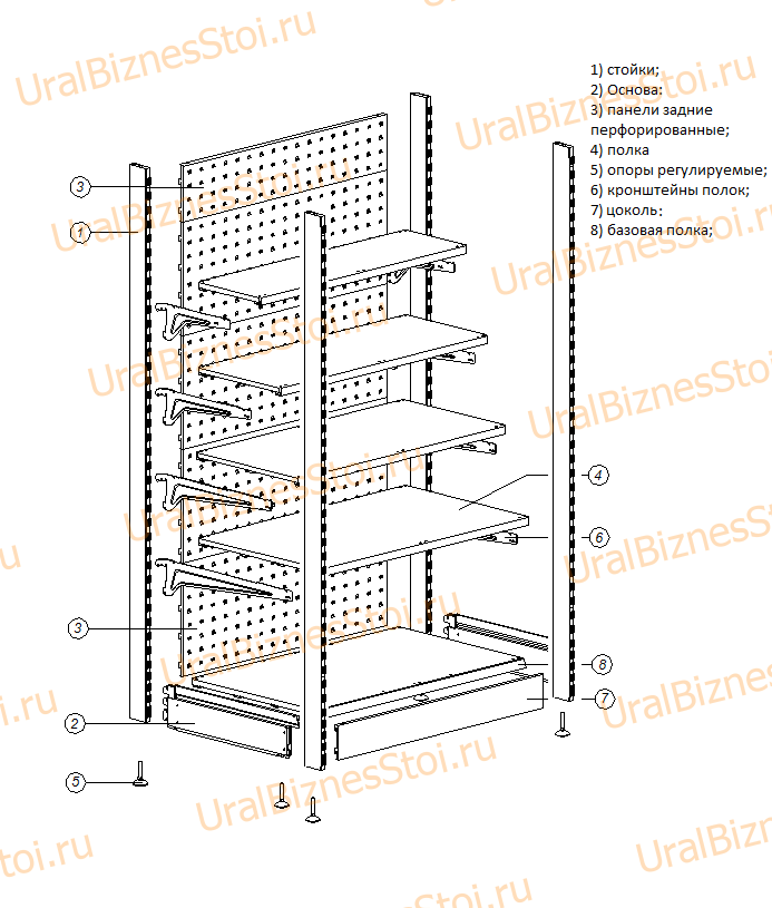 Если же вам необходимы свои типо размеры с определенной растоновкой, нагрузкой и количеством стеллажей, мы будем рады вас проконсультировать по почте или телефону. Подберём по самым выгодным ценам торговые стеллажи.